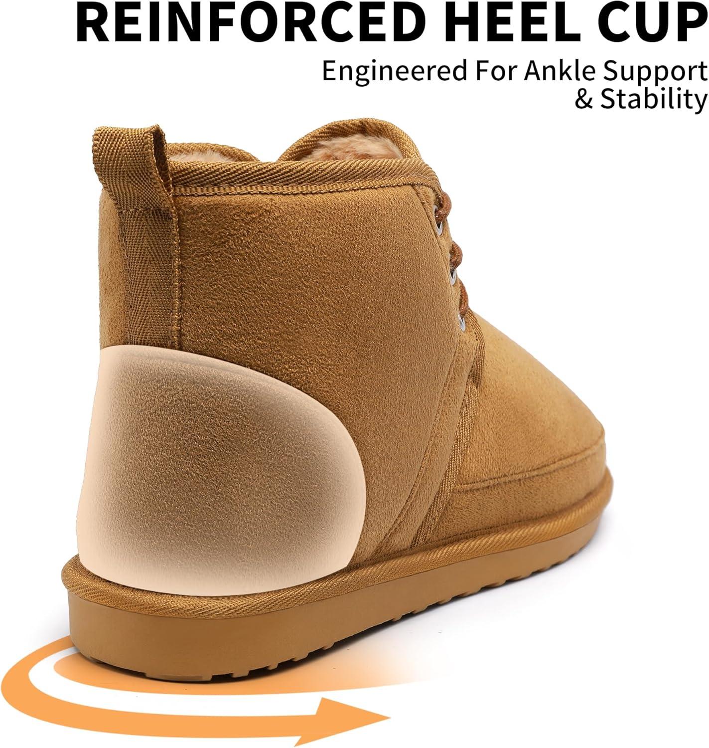 MIXIN Men’s Winter Snow Boots Fuzzy Cozy Suede Leather Cold Weather Warm Outdoor Casual Ankle Boots(Bronze)